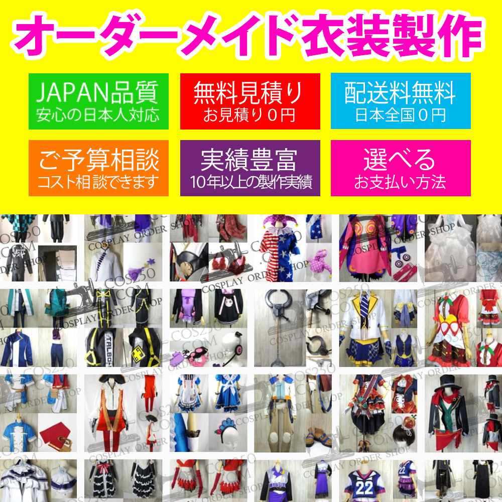 コスプレオーダー製作販売ページ コスプレオーダー製作注文ページ (cos_order_08802) お支払いは前払いとなります。 ご入金確認後、製作開始となりますので、お支払い後当店までご連絡下さい。 サイズの詳細は、ご入金確認後にサイズ送信フォームをご案内させていただきます。 ※メールの受信について 当店からのメールが、迷惑メールフォルダ等に振り分けられないように cos250.comのドメインアドレスを受信出来るよう設定お願いいたします。 在庫状態 : 在庫有り ¥68,310 ¥68,310(税込) 数量